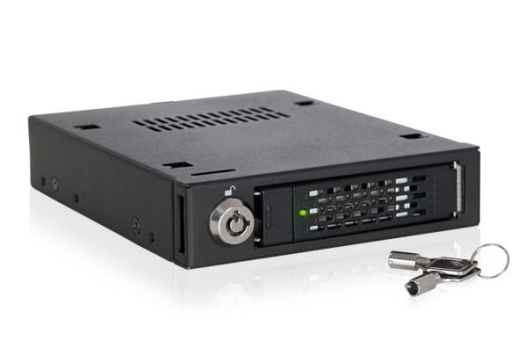 The MB601VK-B is ICY DOCK's next generation PCI-E based mobile rack with ability in supporting ultra high speed solid-state-disk in an external floppy drive bay.