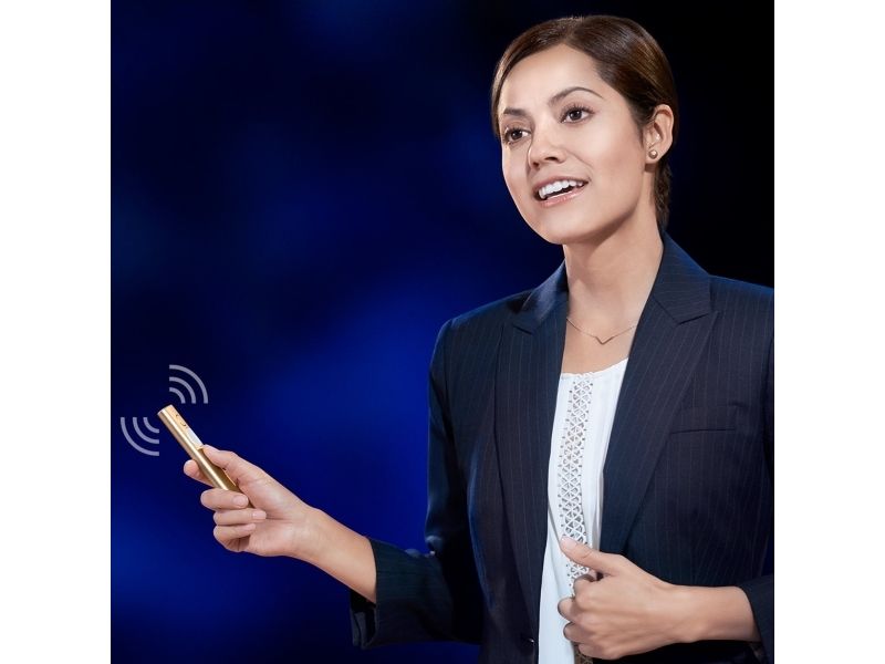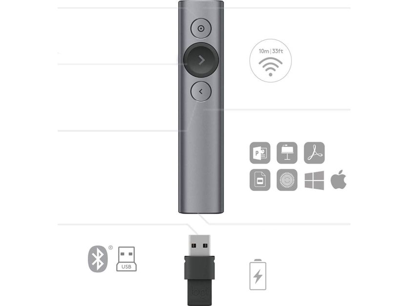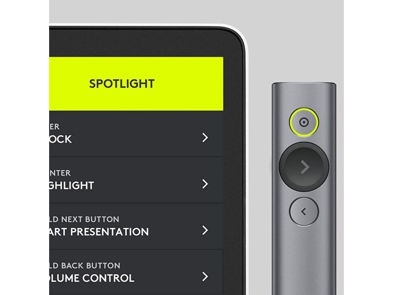 Spotlight kobler umiddelbart til via en USB-mottaker eller Bluetooth Smart. Den kan kobles direkte til de fleste plattformer og er kompatible med alle populære presentasjonsapper. I tillegg er den fullt oppladbar og gir 30 m driftsrekkevidde.