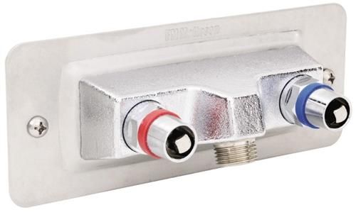 Klassisk frostfri udendørs vandhane fra FM Mattsson til koldt og varmt vand, med løs nøgle. Vandhanen monteres med et fald på 2°, således at vandet selv løber fra, efter at man har lukket for vandet. Max. 400 mm vægtykkelse. Vægpladen er i rustfrit stål - ventilhuset og hanen er i forkromet messing.