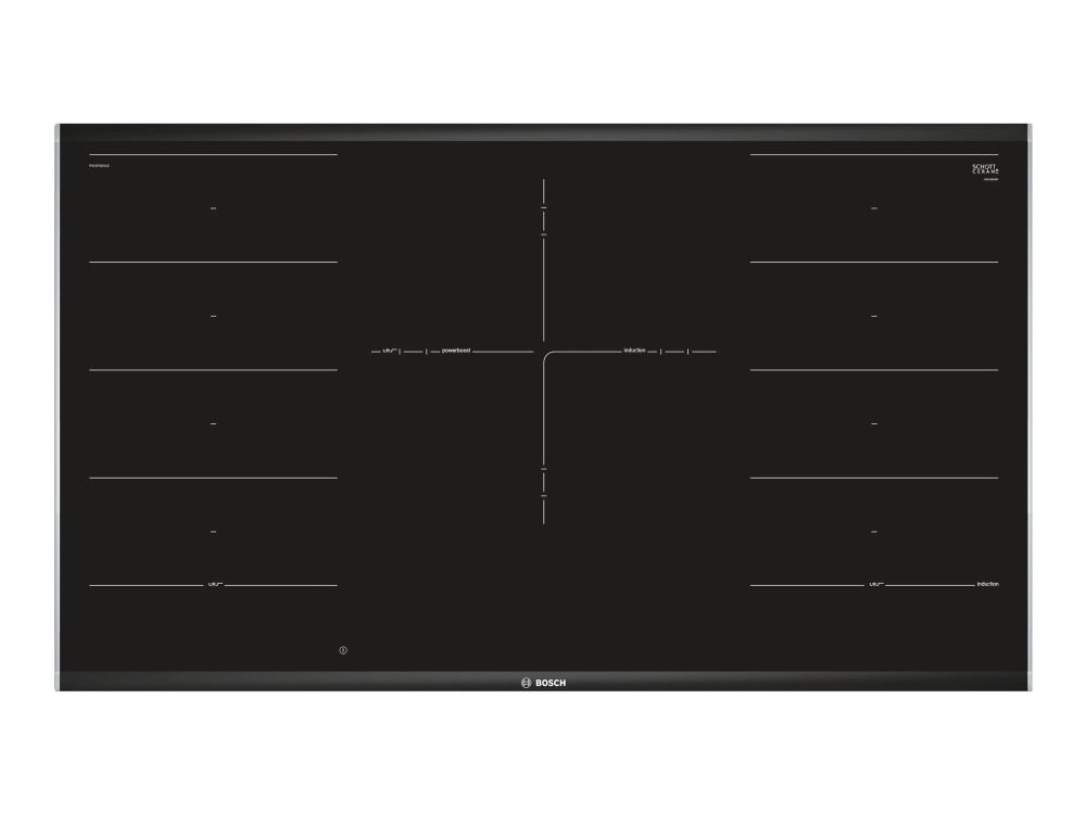 Bosch Serie | 8 PXV975DV1E induksjonskomfyrtopp - 90 cm - svart - keramisk fasetterte kantlister foran og bak, - med sidepynt av rustfritt stål