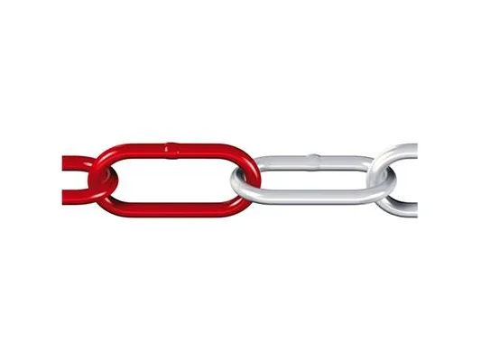 DH rundstålkæde C-60 din 5685-1 rød/hvid 15 m Din 5685-1, galvaniseret, rødhvidlakeret • ABæreevne: 160kg Form:C-led-ledetråstålkæde. Kædeled svejsetAnvendelsesområder:Afspærringskæde til afspærring af indkørsler, tilkørselsveje eller parkeringspladser. Ved hjælp af belægning med undergalvanisering og overlakering er kæden meget velegnet til udendørs anvendelse.Anvend ikke som løftekæde. Belastningerne er teoretiske værdier. Kontroller før anvendelse.Materiale:Rundstål. Undergalvanisering giver høj korrosionsbeskyttelse.Handelskvalitet, ikke revideret.