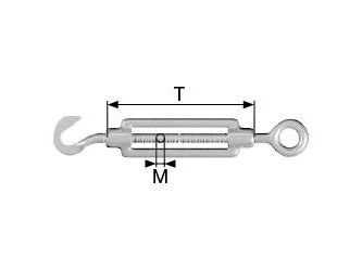 Anvendelsesområder:Til spænding af wirer. Kablet trækkes gennem øjet. Ved at dreje krogen øges eller løsnes spændingen med gevindet.Materiale:Galvaniseret stål, forzinket.