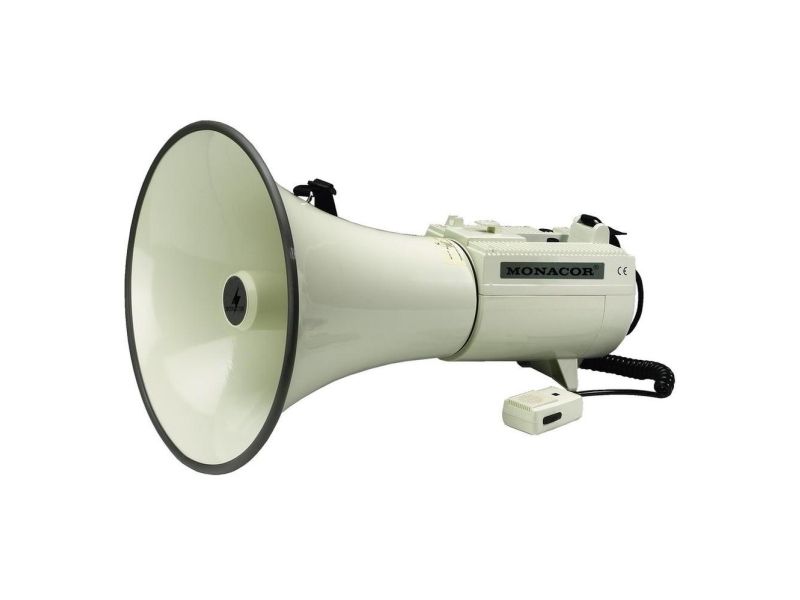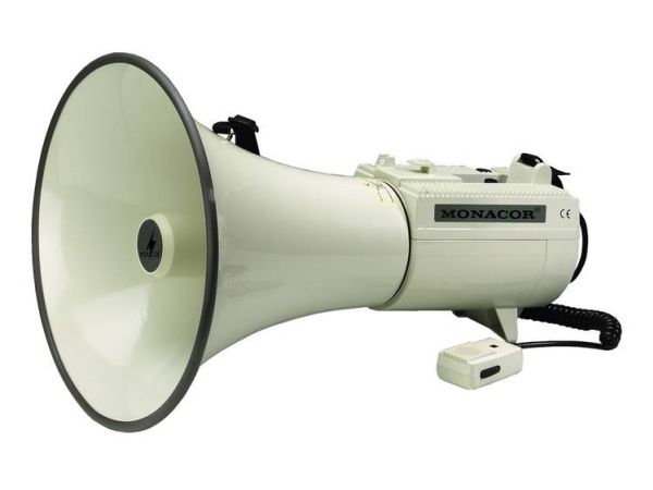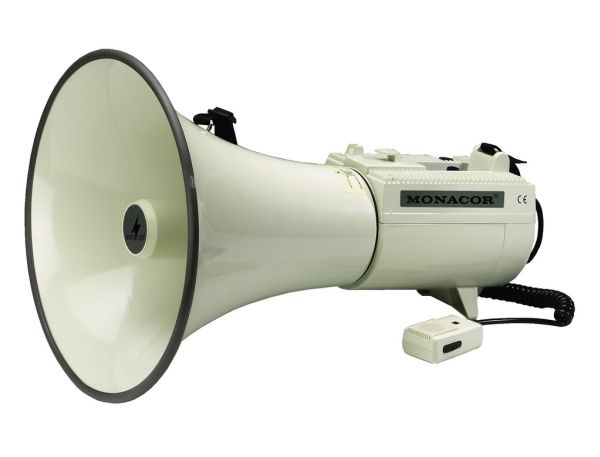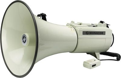 With our range of reliable megaphones, we provide the perfect solution for each application. A few basic selection criteria will help you to choose the right unit. The operating range surely is the most important one. Here, the following applies: with increasing sound pressure (in dB), the operating range of the megaphone increases, too. Furthermore, it is possible to choose between megaphones with integrated microphone, with hand-held microphone or units with an additional wireless microphone. Each megaphone from MONACOR is supplied with power by standard batteries. As an alternative, a few units also feature a 12 V connection. Size, weight and power supply are further selection criteria for choosing the right megaphone. With these comparison criteria, you will surely find the ideal megaphone meeting your individual requirements very quickly.