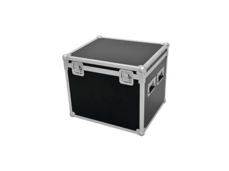 Universaletui med professionel 60x50x50cm Eksklusiv forarbejdning med 7 mm flerlagslimtræ, mørkebrunt lamineret · aluminiumprofilramme (30 mm) med afrundede hjørner · trebenede, mellemstore stålkuglehjørner · 2 hængsler · 2 butterfly-låse · 4 case-klapgreb. Praktisk Truhencase.