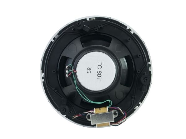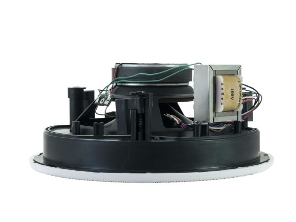 Loftsindbygningshøjttalere · 2-vejs koaksial højttaler med fremragende lydkvalitet · drejelig diskant · 100-V-transformer med 4 effektudtag · enkel montering med clipfastgørelse · førsteklasses ABS-plastkabinet (slag- og ridsefast) · til tale og baggrundsmusik indendørs.