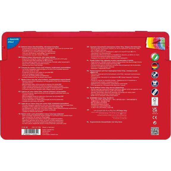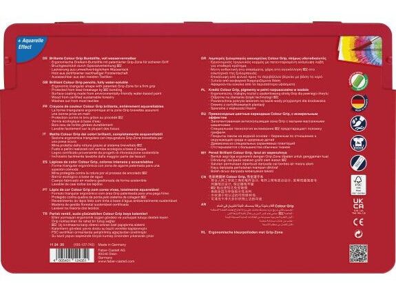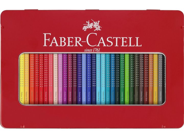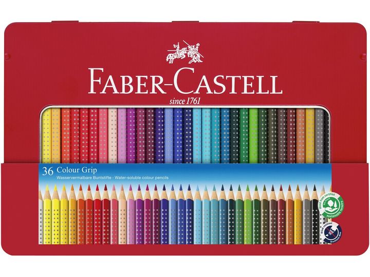 Faber-Castell Color Grip 2001 akvarellfargeblyanter, med 36 assorterte farger i blikkboks