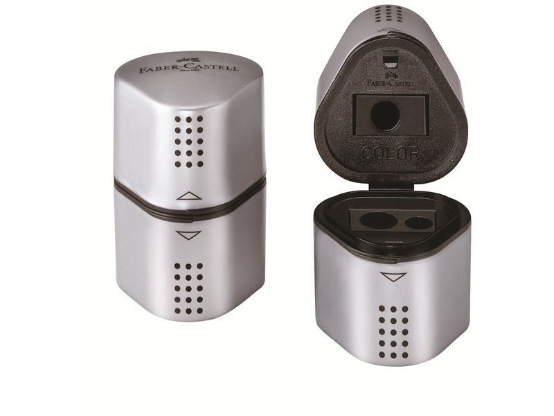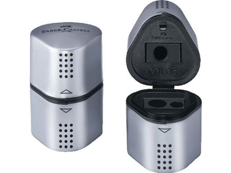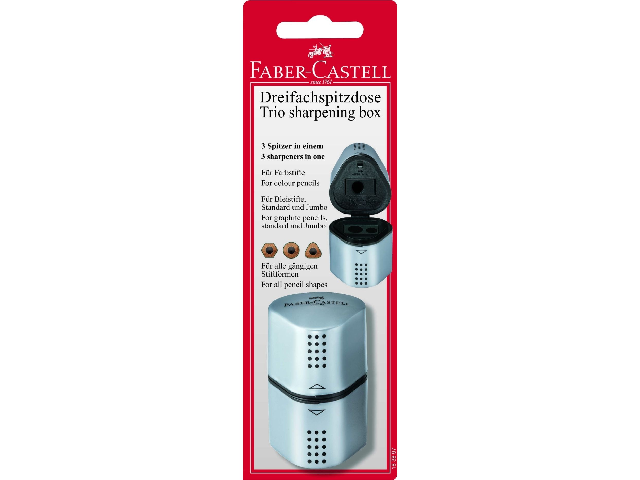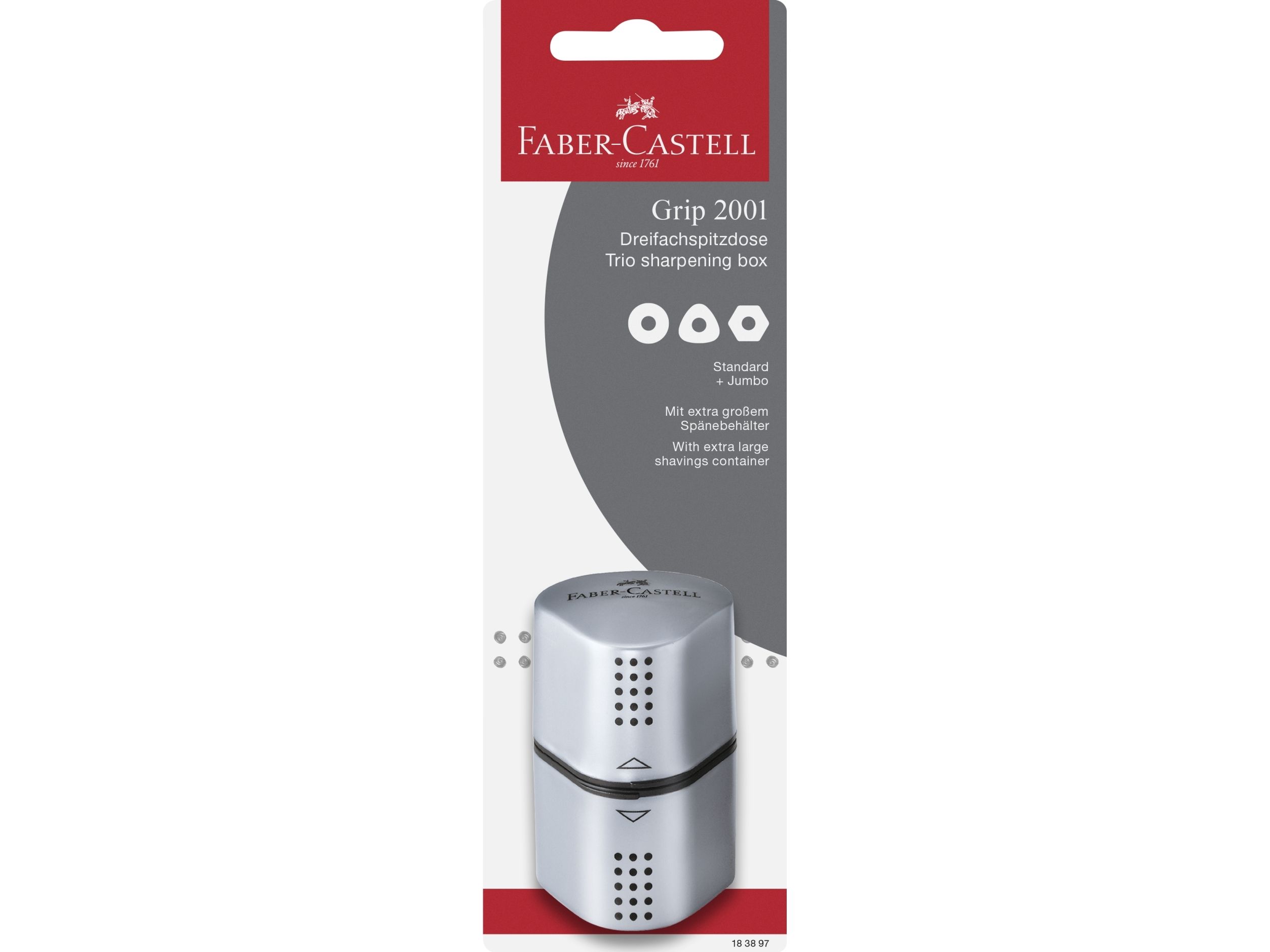 Faber-Castell GRIP 2001 - Blyantspisser med beholder - 3 hull - sølv