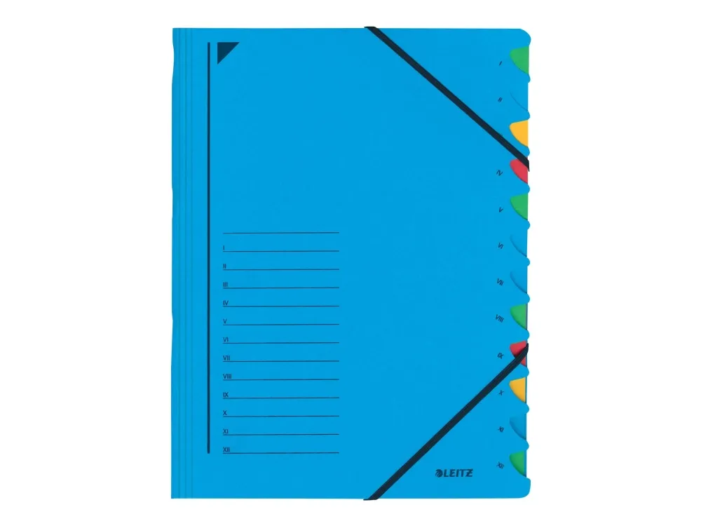 Leitz - Inndeler - 12 rom - 12 deler - fortrykt: I-XII - for A4 (210 x 297 mm) - blå