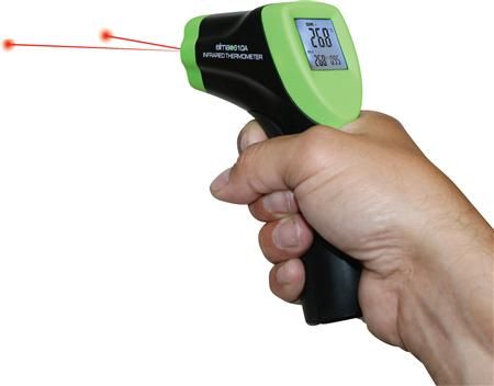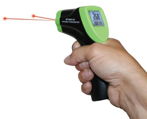Elma Instruments 610A er et simpelt infrarødt termometer, som uden berøring med måleobjektet, kan måle temperaturen. Den korte reaktionstid, ca. 0,15 sekund, gør Elma 610A velegnet til hurtige målinger f.eks. screening af køle-/fryseskabe og målinger på bevægelige dele i maskiner. Elma 610A har belyst display og er udstyret med den nyeste teknik hvor en smart dobbelt lasermarkør indikerer størrelsen af måleområdet så operatøren får en indikation på hvor der måles. Instrumentet leveres komplet inkl. taske, batteri og dansk betjeningsvejledning.
