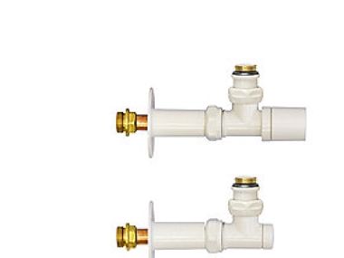 Komplet med fremløbsventil, reguleringshåndtag, returtilslutning og roset
