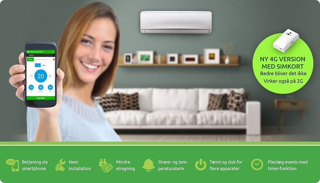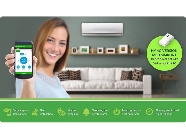 CTSmall VarmepumpestyringMed CTSmall enheden kan du, med din telefon, fjernstyre din varmepumpe eller aircondition, uanset hvor i verden du befinder dig.Og anskaffer du også Climatech relæ-boksen, vil du desuden kunne tænde og slukke for andet elektrisk udstyr som f.eks. gulvvarme, vandvarmer, lys m.m. Nem installeringIndsæt SIM-kort, tilslut strøm og monter CTSmall på væggen. Betjening med smartphoneKontroller din varmepumpe via SMS eller ved hjælp af vores app til Android, iPhone og Win-phone Mindre elregningSpar penge ved kun at have din varmepumpe tændt, når der faktisk er behov for det Strøm- og temperaturalarm Undgå frost- og vandskader med de indbyggede alarmfunktioner. CTSmall underretter dig via SMS Tænd og sluk for andre elektriske apparaterMed Climatech relæ-boksen kan du f.eks. tænde og slukke gulvvarmen eller vandvarmeren i dit sommerhus, bruge den som helpdesk-værktøj til server genstart og meget andet. Se varenummer 346601220. Tekniske specifikationer: