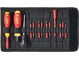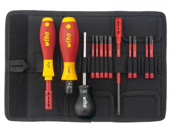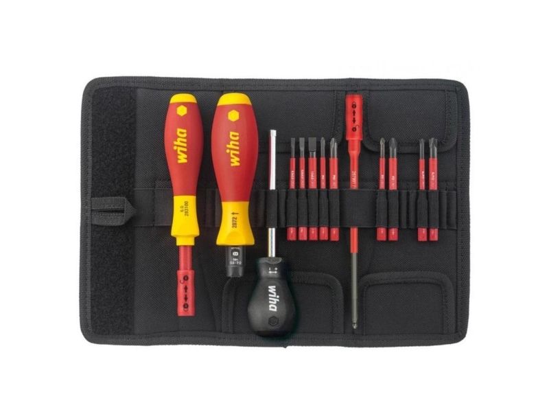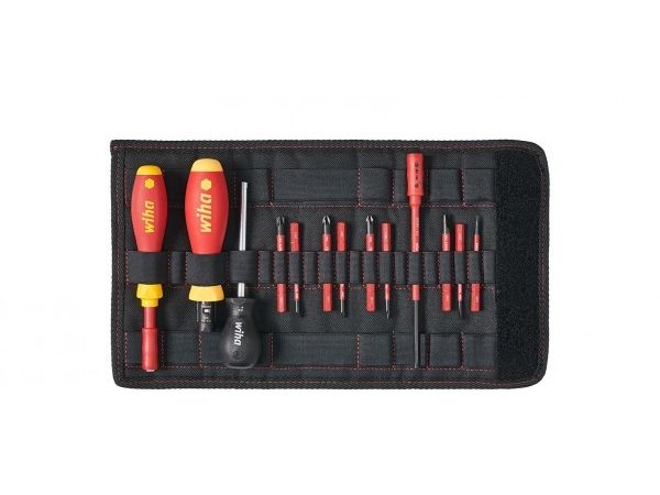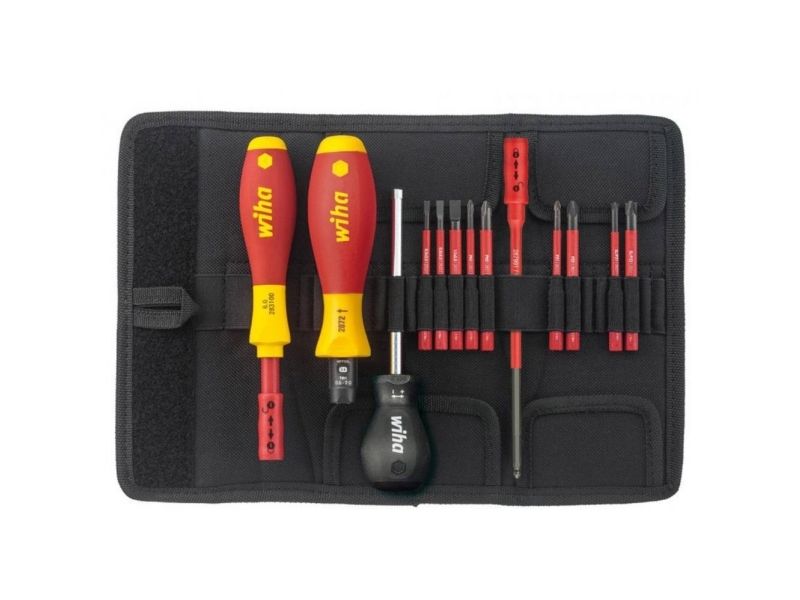 Greb Bitholder med SoftFinish® electric flerkomponent-greb. Standarder Produceret iht. IEC 60900. DIN EN ISO 6789. Bitholder Isoleret bitholder af metal låser alle slimBits pålideligt. Bits Beskyttelsesisolering sprøjtet direkte på bitten og er helt indbygget i bittens forreste del. Stykkontrolleret beskyttelsesisolering 1.000 V AC, VDE- og GS-godkendt. Anvendelse Til kontrolleret fastskruning ved spændingsførende dele op til 1.000 V AC. Ekstra Nem tilgang til dybt liggende skrueklemmer. Overskueligt placeret i en slidstærk taske af høj kvalitet.
