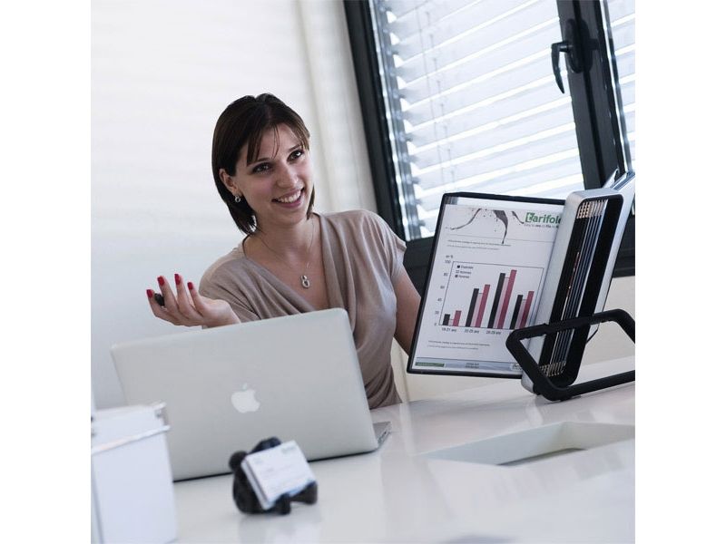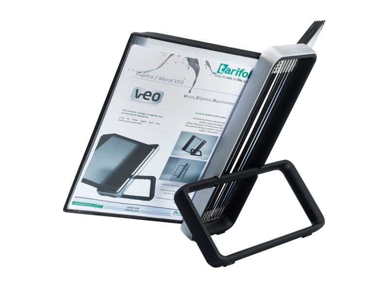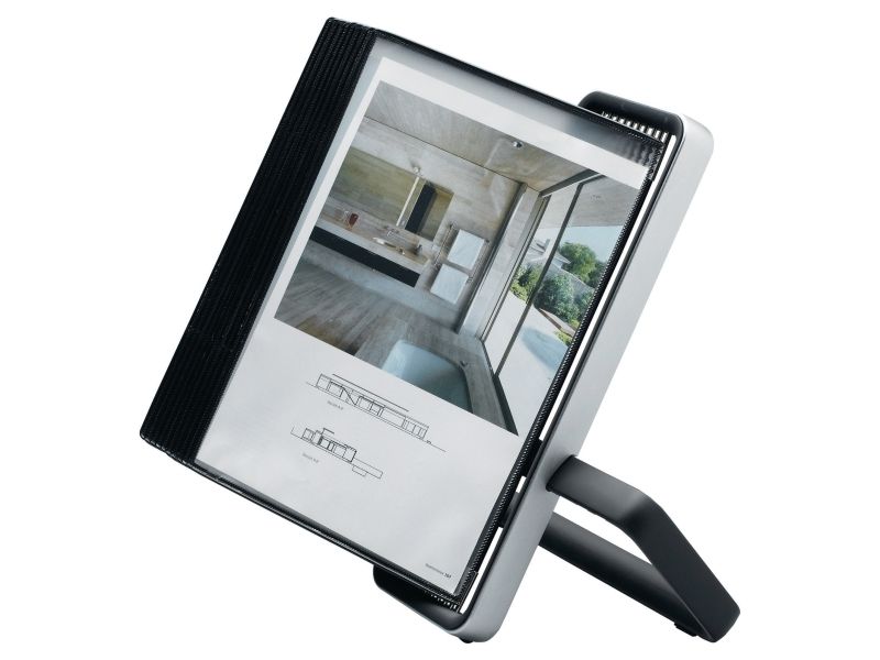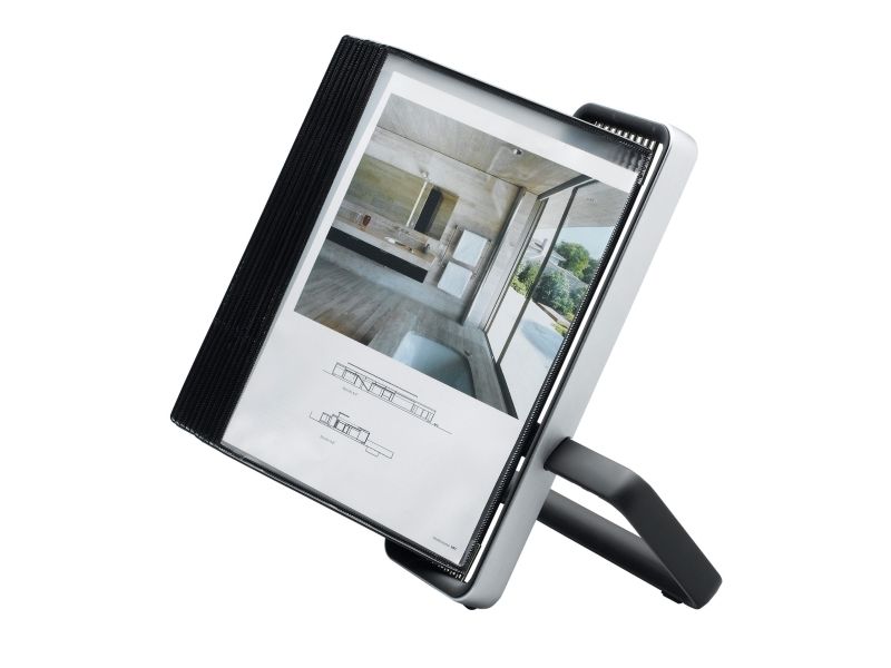 STATEN OG KOMMUNERNES INDKØBSSERVICE A/S Bordstander i metal med utrolig enkel opsætning: Ét klik, uden brug af værktøj Leveres komplet med 10 stk. sorte PP-plastlommer Best.enhed: stk.
