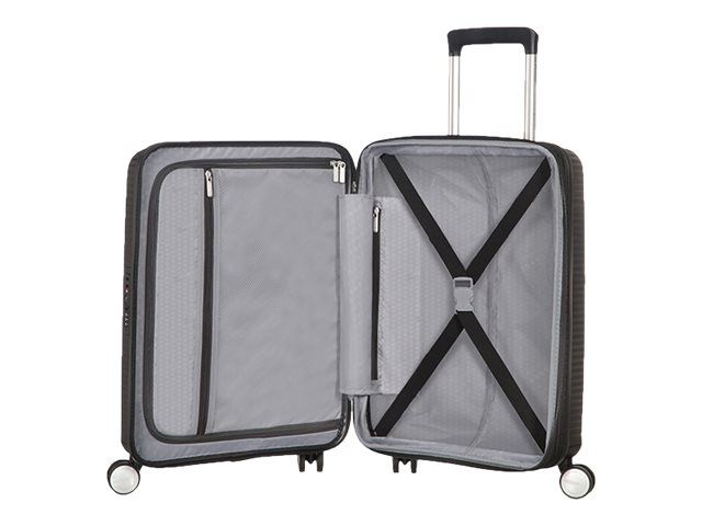 This award-winning expandable hand luggage from the groovy Soundbox collection is one of our most impactful suitcase designs to date. The playful circular look with contrasting matte and shiny surfaces will really cause a stir whenever you travel. Expandability, fixed TSA lock and handy inside organisation all help to make this a first rate suitcase choice! Fits a variety of airline hand luggage dimensions, including Ryanair, easyJet and Norwegian!