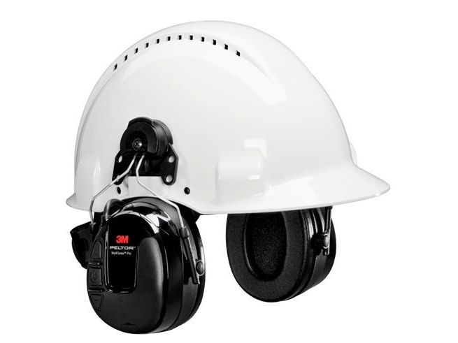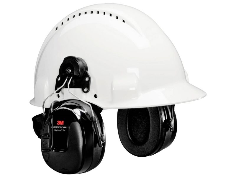 Høreværn, 3M™ Peltor™ WorkTunes™ Pro. Høreværn til montering på hjelm med FM-radio og indbygget antenne, så du undgår, at antennen støder ind i eller sætter sig fast i noget, når du når du arbejder trange steder. Søg hurtigt efter radiokanaler, og juster let volumen via høreværnets intuitive knapper. En guidestemme fortæller dig, hvilken frekvens du er på, når du finder en radiostation. Du kan tilslutte walkie-talkie eller mobil via minijack-stikket 3,5 mm. Bruger 2 stk. AA-batterier, som er inkluderet i pakken. Beskyttelsesniveau: SNR 31 dB For at fastsætte lydtrykket som udøves p[...]