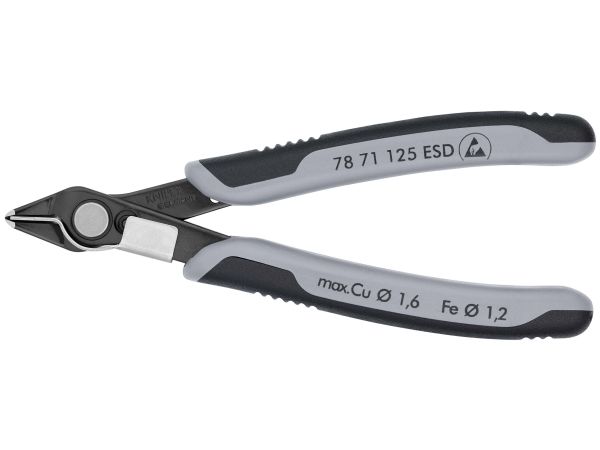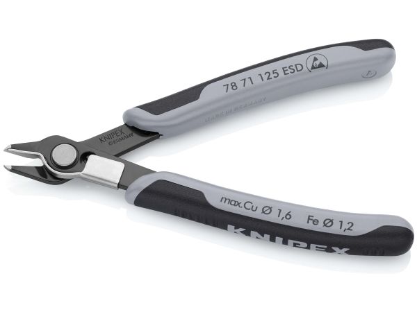 Knipex 78 71 125 ESD, Diagonaltang, Rustfritt stål, Stål, Plast, Svart, Grå, 125 mm, 57 g
