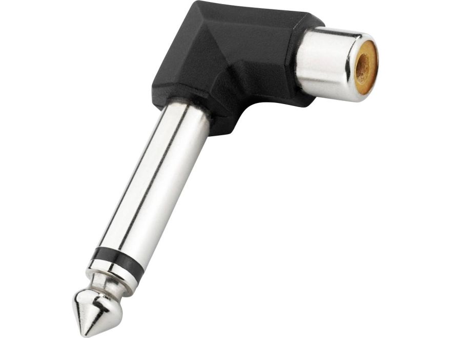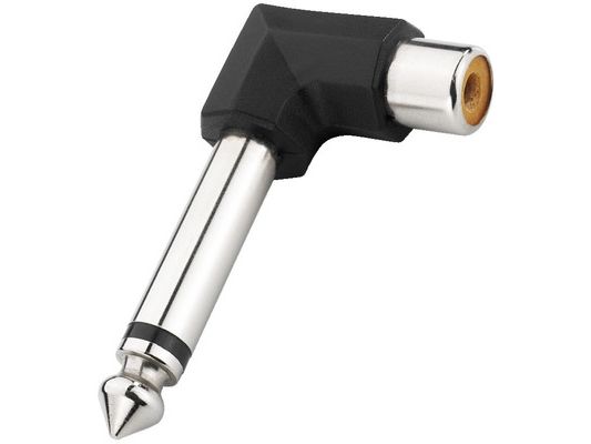 Adapter, right-angle;6.3 mm mono plug to RCA jack.;Manufacturer information:;MONACOR INTERNATIONAL GmbH & Co. KG