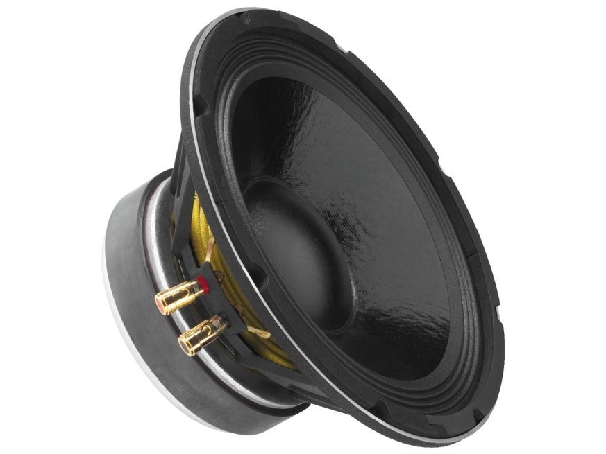 PA bass-midrange speaker, 300 W, 8 Ω;#Of very high power capability;#25 cm (10") professional speaker of long excursion;#Diecast basket;#Cone with water-repellent coating;#Very neat workmanship with a front-facing basket;#Wide frequency response of low distortion;#High efficiency;#Drive system with drilled pole core and additional magnet for optimising the magnetic field and impedance linearisation;#For compact bass-reflex cabinets from 20 litres on already;#For all kinds of professional and semiprofessional PA applications;;HOBBY HiFi 01/2017;“Bass driver providing a top-class sound for compact bass-reflex cabinets of about 40 litres, suitable for 2-way systems.”;Manufacturer information:;MONACOR INTERNATIONAL GmbH & Co. KG Konsul-Smidt-Str. 68 28217 Bremen Germany [email protected]