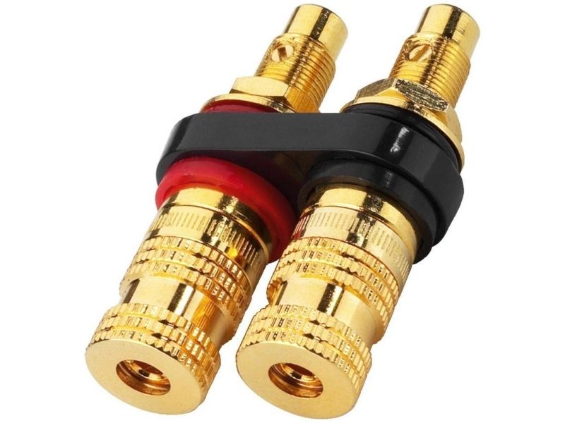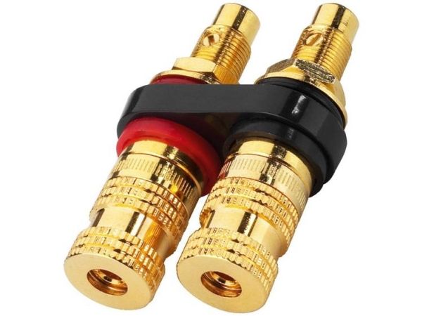 High-LS-terminal kan skrues af, med forgyldte fuldmetal tilslutninger, til skruer samt til 4-mm-bananstik. Isoleret indbygning