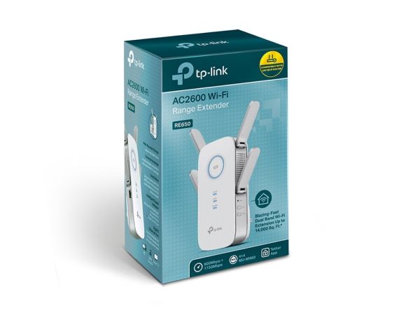 With four external and dual band antennas, the RE650 establishes a stable wireless connection to any Wi-Fi router and boost the network's coverage. The 880 MHz dual-core processor provides maximum Wi-Fi performance, keeping your smartphones and tablets connected as you move throughout your home. Beamforming technology detects the location of devices and concentrates Wi-Fi towards them for stronger connections. Using 4-stream technology to boost its Wi-Fi capability, the RE650 reaches advanced high speeds. This provides the speed and elite performance necessary to support your demanding online applications, including simultaneous 4K streaming and lag-free gaming.