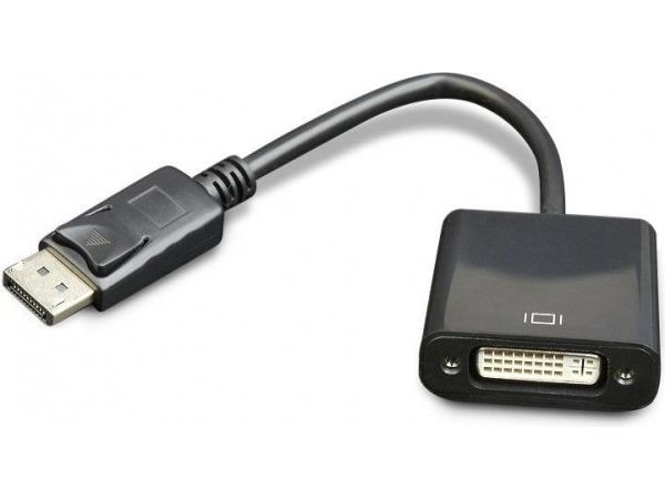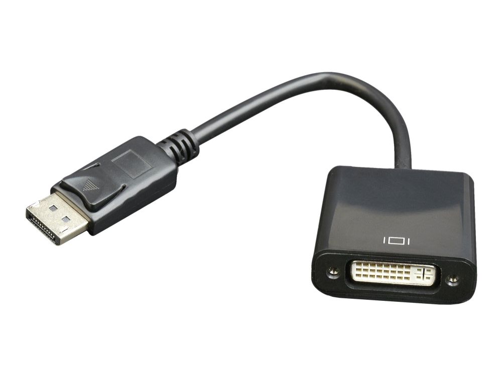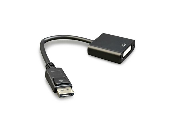 This male DisplayPort to female DVI adapter cable enables connecting a DVI display to a DisplayPort video source.