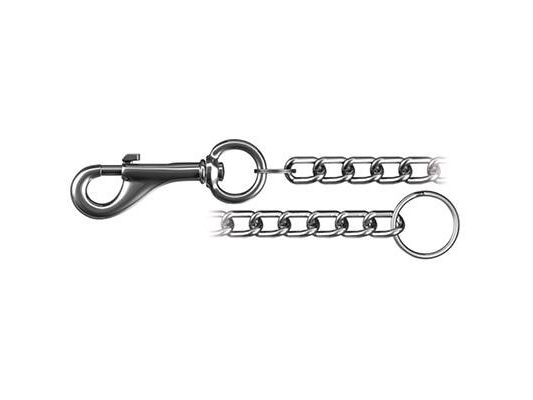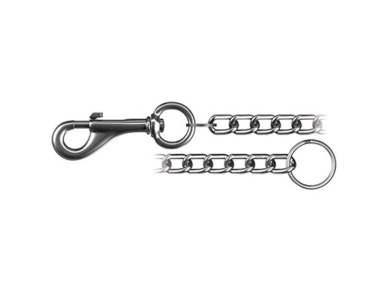 Tilbehør består af 35 cm panserkæde med diameter 1,8 mm, nøglering diameter 30 mm og karabinhage 50 mm · Forniklet stål
