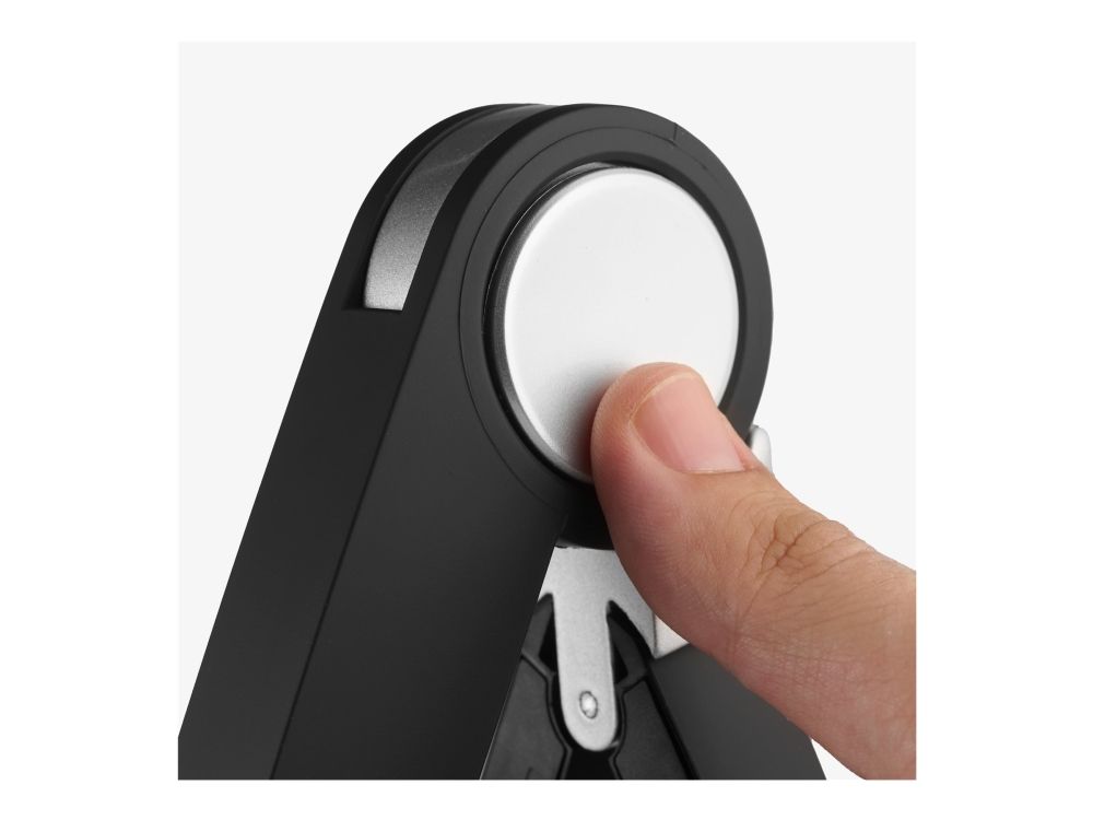 Med dette laptopstativet kan du heve skjermen til øyehøyde i avstand som fungerer optimalt for deg. Stativet forebygger ubehag og risiko for slitasjeskader når du bruker en bærbar datamaskin. Når du lener deg tilbake i stolen og bruker et laptopstativ i kombinasjon med eksternt tastatur og mus, fremmer dette en ergonomisk riktig arbeidsstilling når du jobber med datamaskinen.