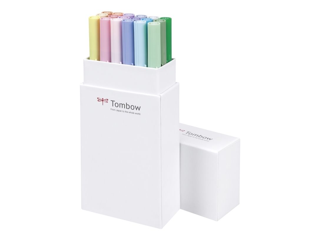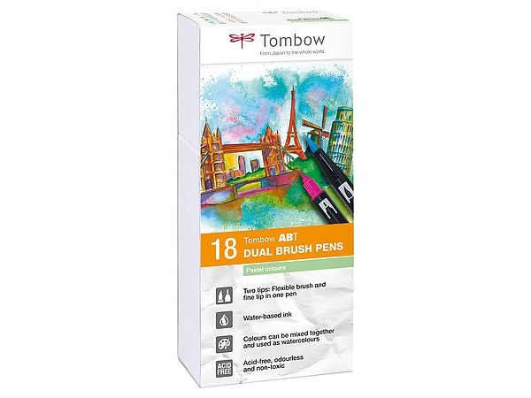Marker Tombow ABT Dual Brush, æske med 18 stk. tuscher med 2 spidser - en fin spids til at tegne præcise streger og en bredere pensel spids.