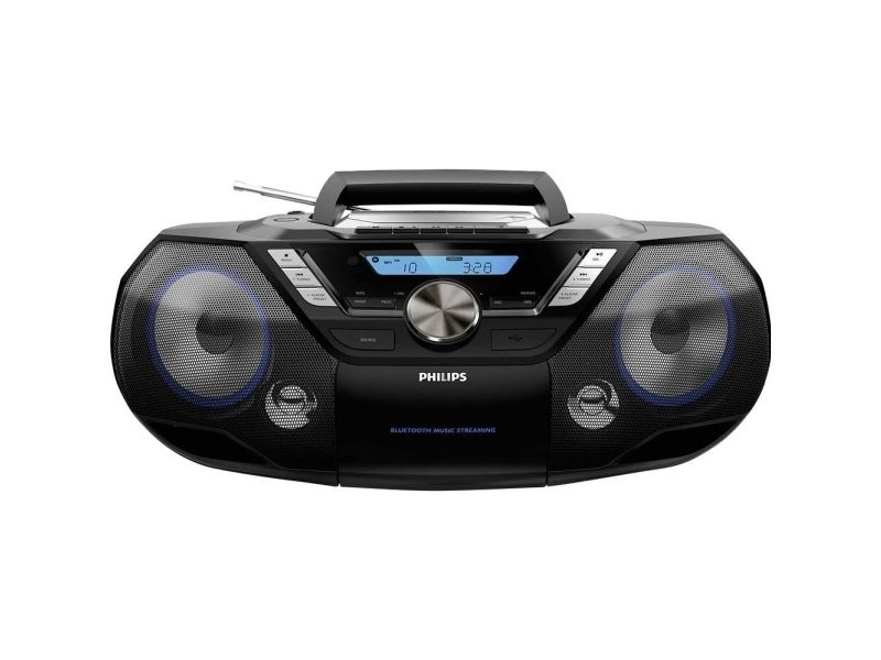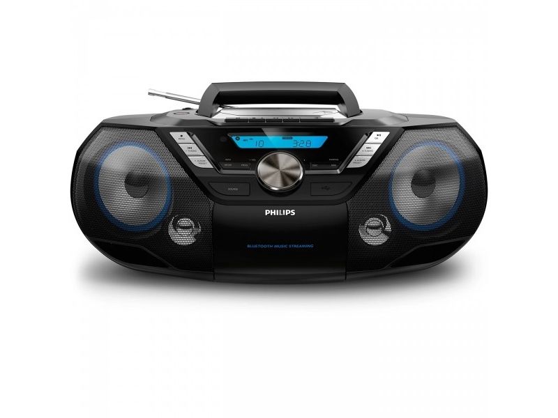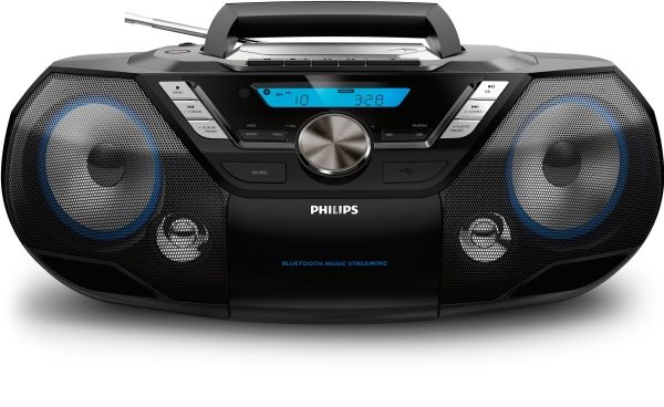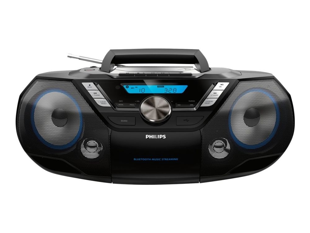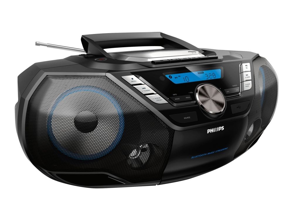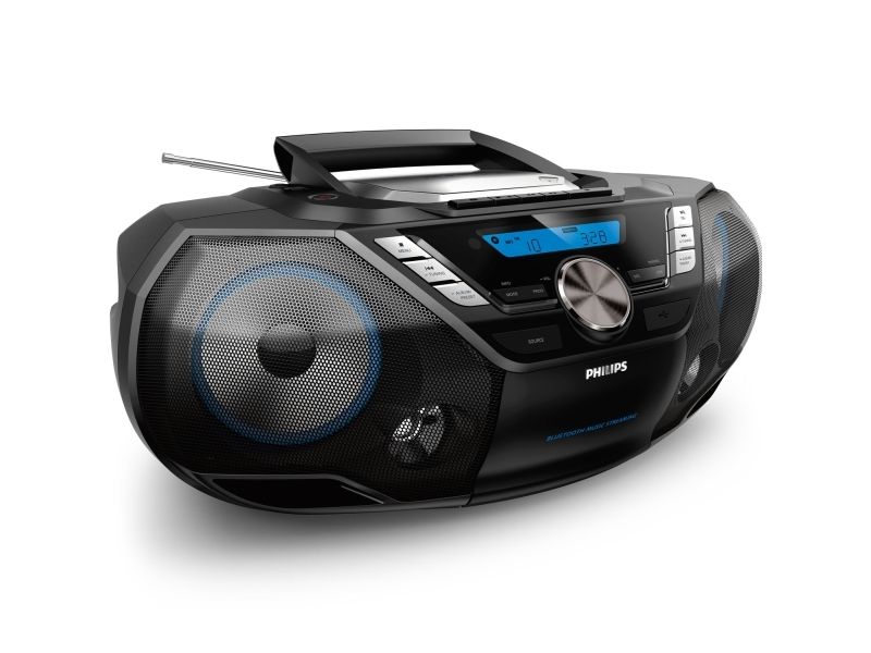Philips bærbare CD-lydmaskin er et kraftig alt-i-ett lydanlegg som du kan ha med deg overalt. Du kan spille av musikk fra flere ulike kilder – Bluetooth, USB, CD, kassett, DAB+- og FM-radio.