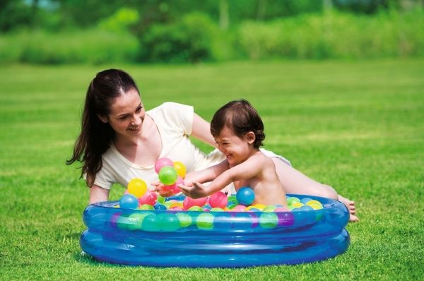 Indhold: Et svømmebassin, 50 spillebolde, en reparationslap