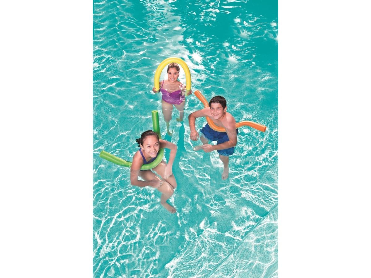 AQUA BONES - Flexible, non-chafing foam and deformable POM - Provides additional buoyancy when placed under armpits - Floating aid for performing aquatic exercise and pool play - Especially designed for developing water confidence - Stays in any shape you bend it - Bendable bones make a loud, cracking sounds! - Great for floating, splashing, making waves or even exercising! - A fun imaginative way to play in the pool this summer! - Each Aqua Bone contains 58 interlocking joints Content: 24 aqua bones