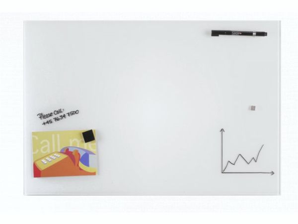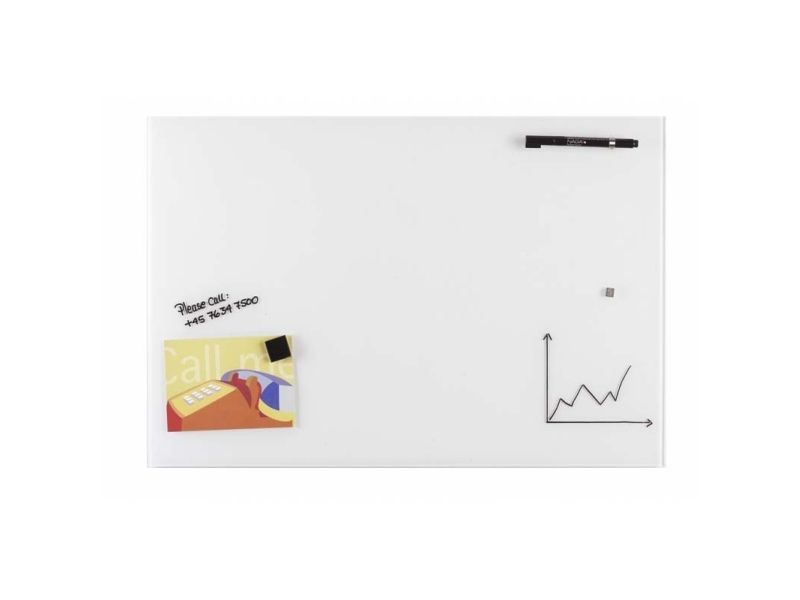 40 x 60 cm. Hvid Magnetisk GlastavleEn magnetisk glastavle kan bruges som opslagstavle ved brug af stærke magneter. Glasset giver et elegant udtryk og er samtidig en praktisk vægdekoration.Bemærk! Kun super stærke magneter kan bruges på glastavlen. Magneter medfølger ikke. Der skal anvendes stærke magneter af materialet neodymium, da magneten skal nå igennem til metallaget bagerst på tavlen. Magneter der skal anvendes på NAGA glastavler skal være kraftige neodym magneter.Skriv på glasset med en kridt marker, eller med en almindelig whiteboard marker. Når teksten er tør, kan den nemt viskes ud igen, brug en tavlesvamp eller en tør klud. Til grundig rengøring skal du bruge tavlerens eller almindeligt glaspudsemiddel og en blød klud. Det er vigtigt, at du bruger en blød klud for at undgå at ridse glasset.Ophæng: Der medfølger skruer og rawlplugs samt en boreskabelon. Stålbagsiden på tavlen har huller i hvert hjørne, så tavlen er nem at hænge op. Se monteringsvejledning under vejledninger. Tavlen kan hænges vandret eller lodret.Tavletilbehør kan tilkøbes.