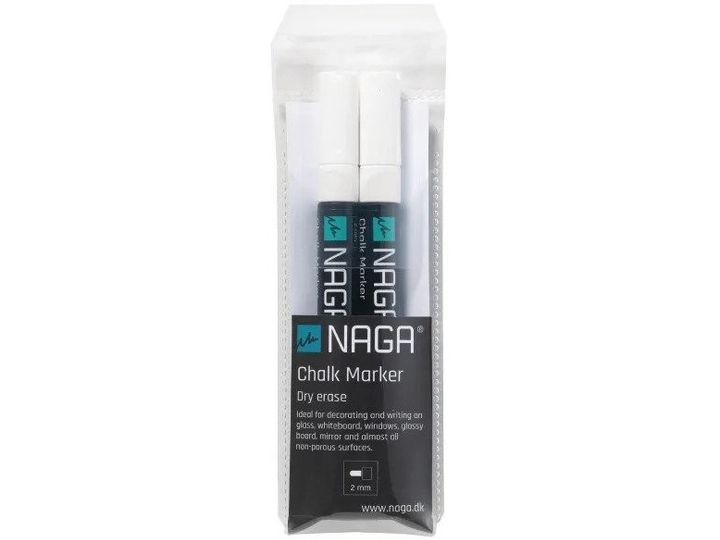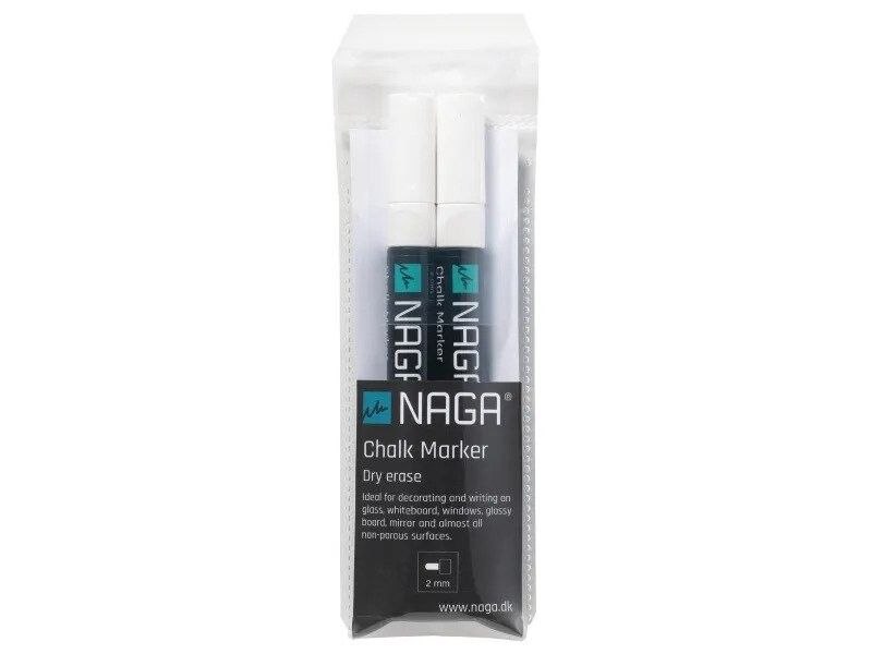 Chalkmarker NAGA hvid 2 mm - til glastavler - (2 stk.)