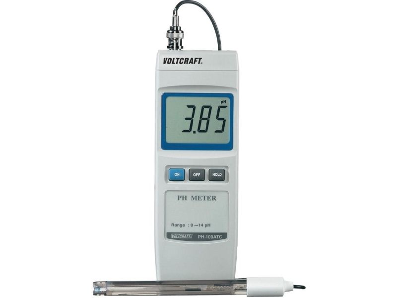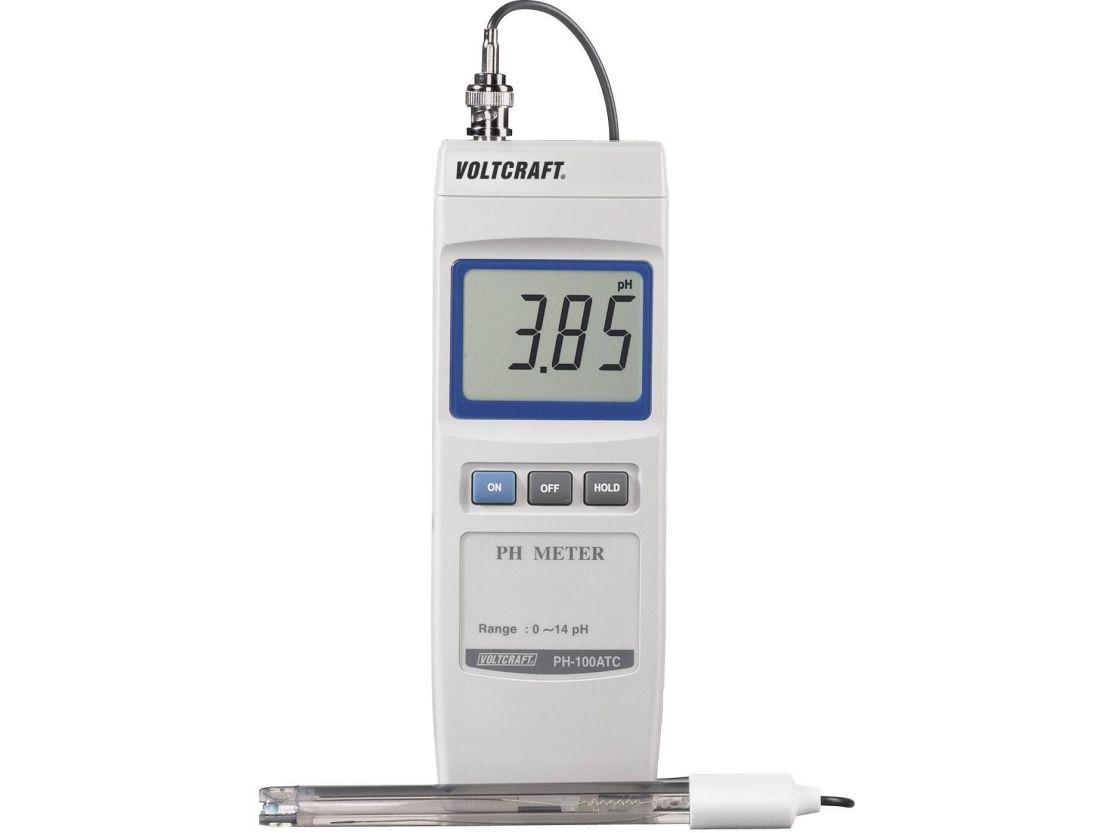 Digitalt pH-meter PH-100 ATC Data-Hold · Topunkts-kalibrering · Automatisk temperaturkompensation. Uanset om det er til måling af pH-værdien i svømmehaller eller af vandets iltandel og ledningsevne i akvarier: Dårlige vandværdier er ofte årsag til fiskedød, dårlig plantevækst eller mislykkede forsøg i skole eller laboratorium. Og når konsekvenserne af dårlig vandkvalitet bliver synlige, er det oftest allerede for sent. Pålideligt og præcist pH-meter til anvendelse i skoler, laboratorier, akvarier, svømmebassiner eller til kvalitetskontrol. Måleområde 0 - 14 pH Opløsning 0,01 pH