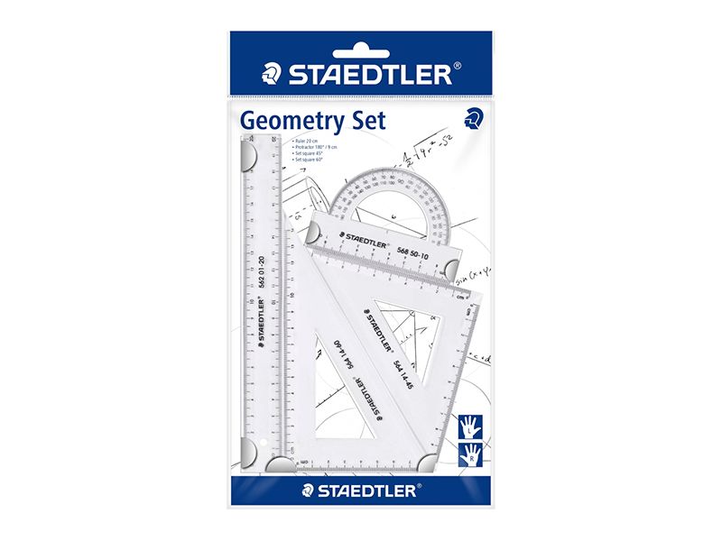 The STAEDTLER Mars 569 Geometry Set is a comprehensive collection of precision tools designed to meet the needs of both students and professionals in the fields of drafting, architecture, and art. This set includes a 180° protractor, a 20 cm ruler, and two triangles (30°/60° and 45°), providing the essential tools required for precise measurements and perfect angles. Whether you're working on complex geometric designs or simple architectural sketches, the STAEDTLER Mars 569 Geometry Set ensures accuracy and efficiency in every project.