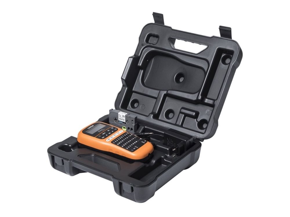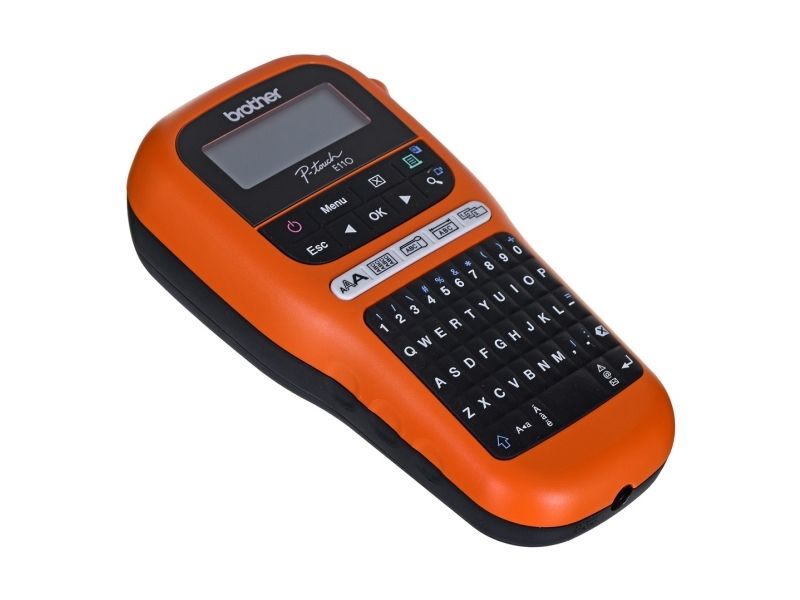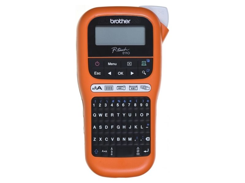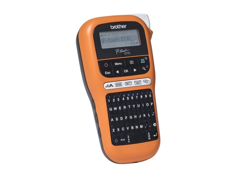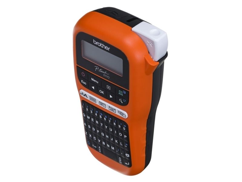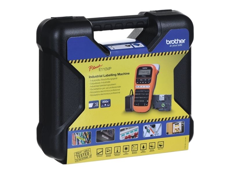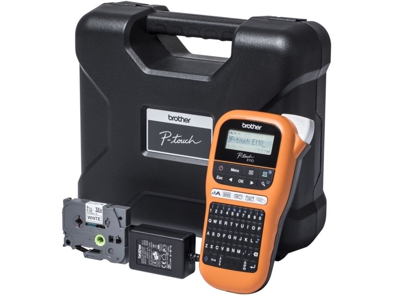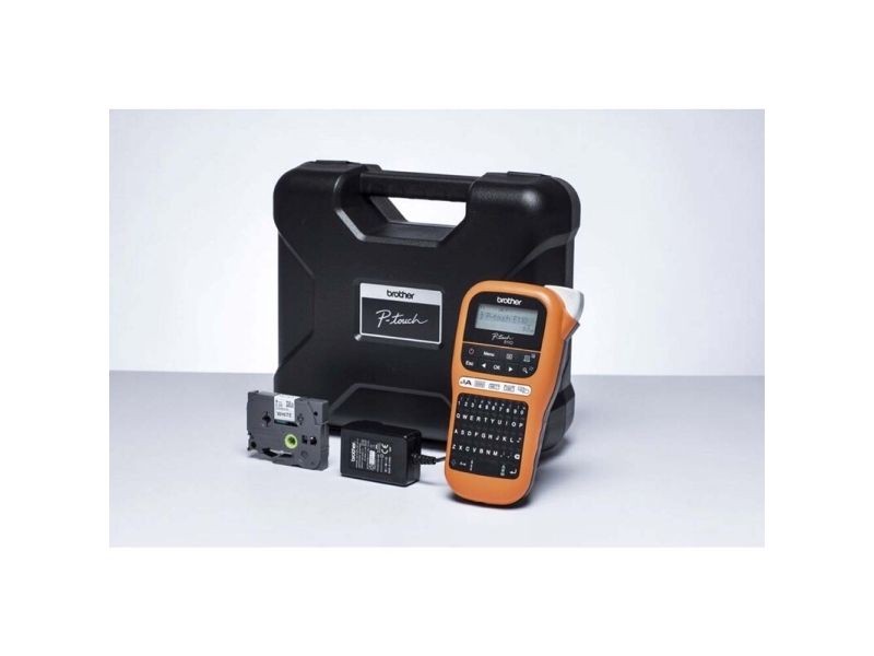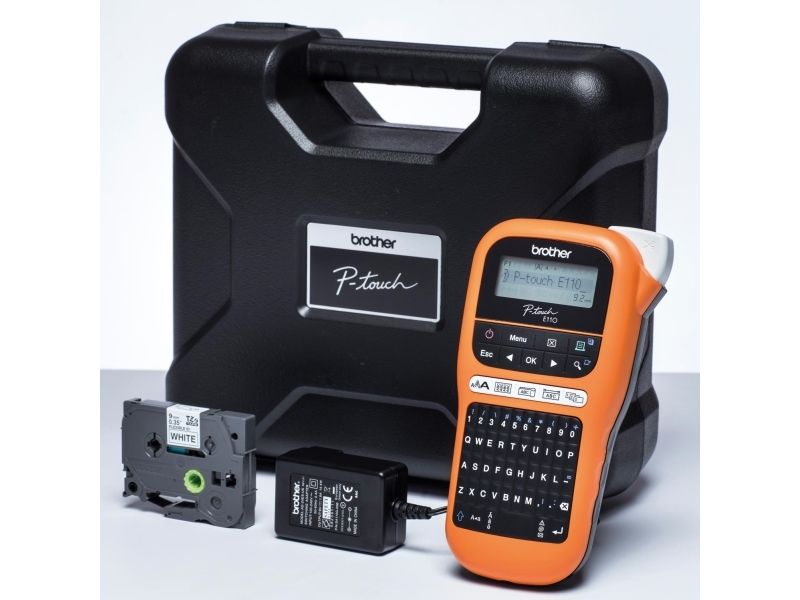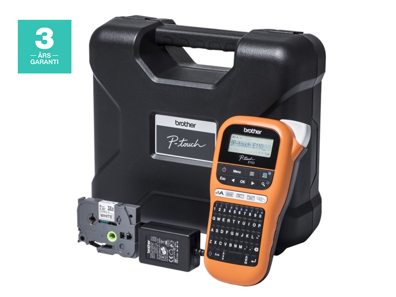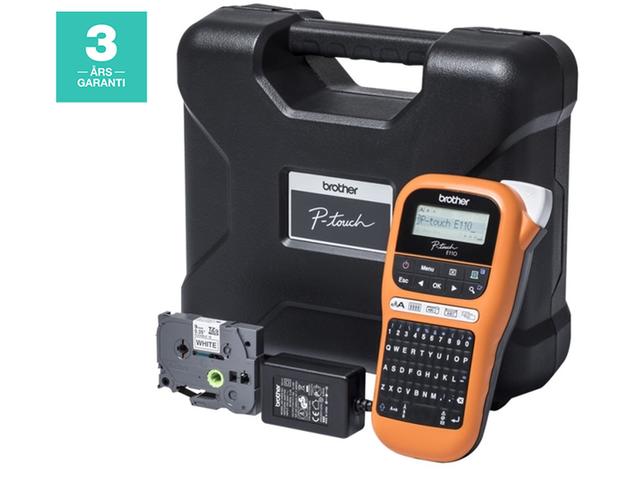 Brother P-Touch PT-E110VP - Etikettmaker - S/H - termotransfer - Rull (1,2 cm) - 180 dpi - inntil 20 mm/sek - kutter - 2-linjers utskrift - svart, oransje