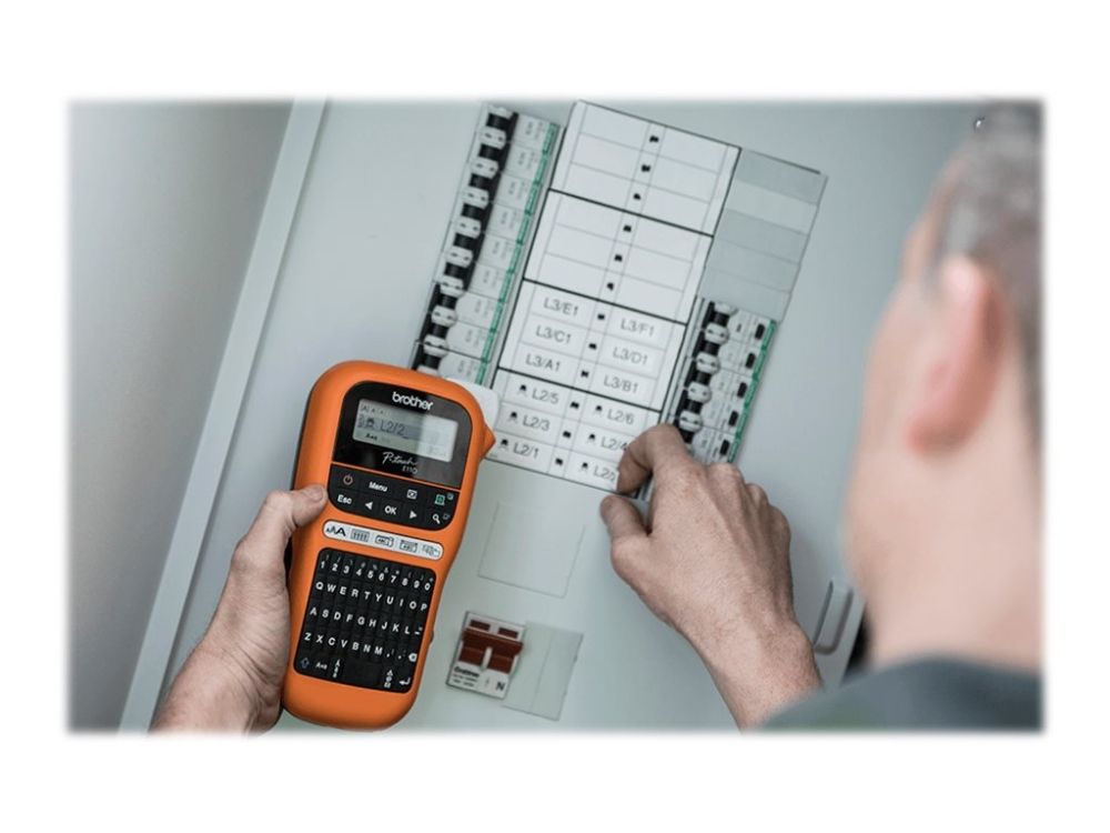 Lag etiketter i ulike fargekombinasjoner og bredder som er testet under ekstreme forhold for å sikre at de holder lenge. Med dedikerte funksjoner og smarttaster som gjør vanlige etiketteringsoppgaver raske og enkle, og alt leveres i en hard bæreveske. PT-E110VP er et uvurderlig verktøy for elektrikere og andre yrkesgrupper.
