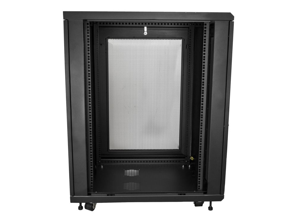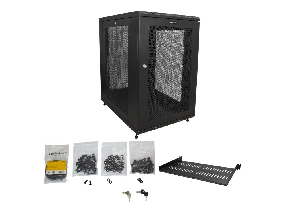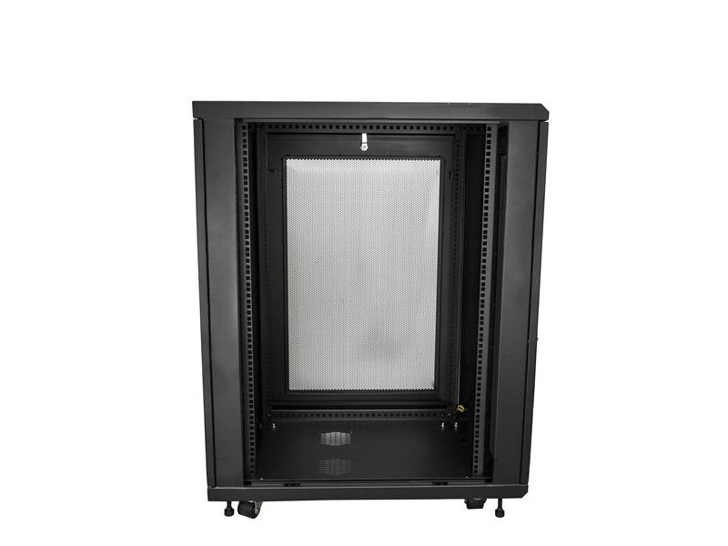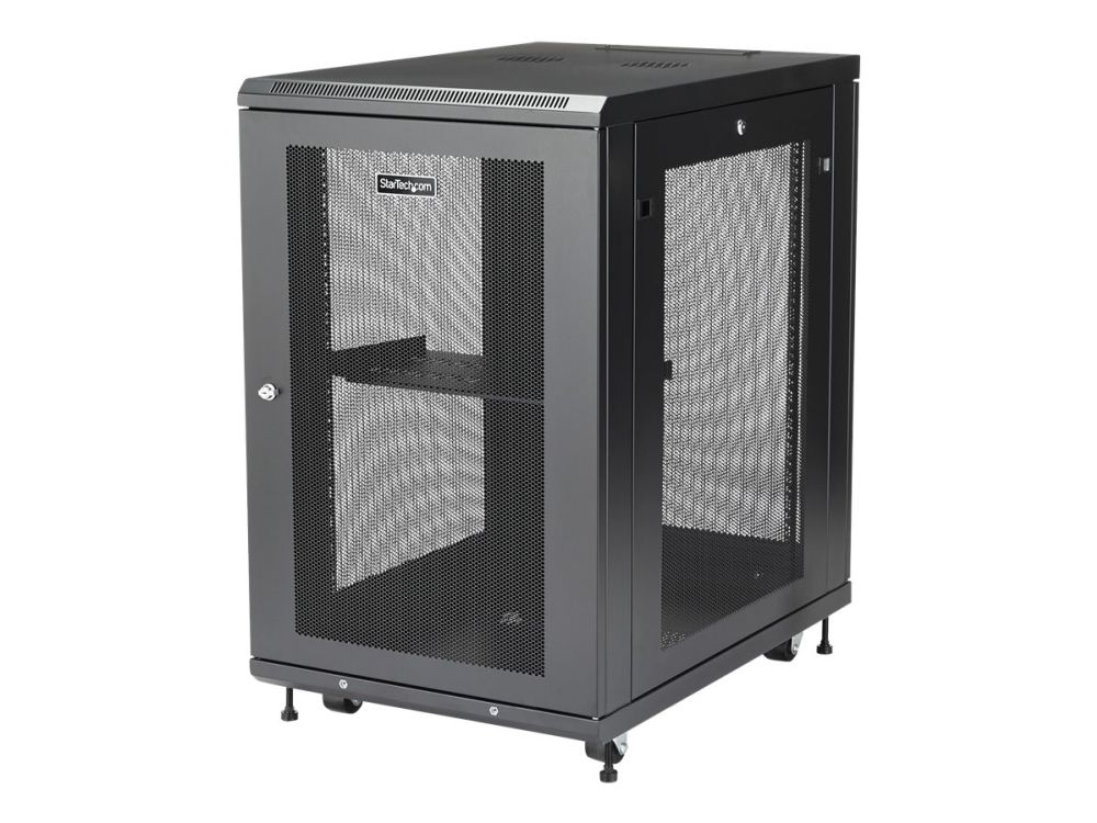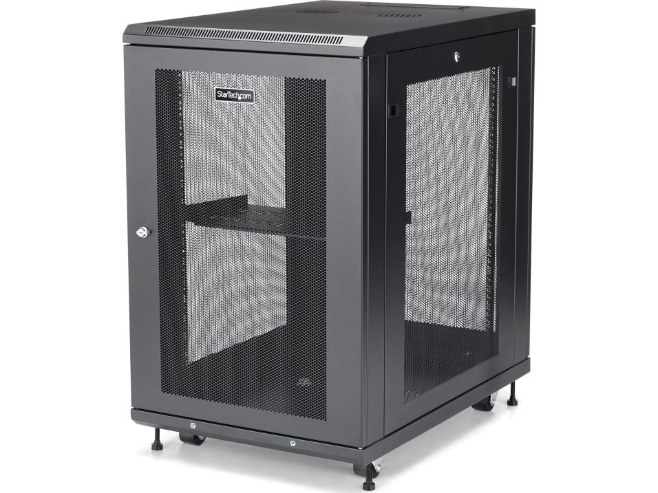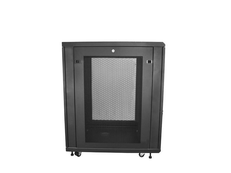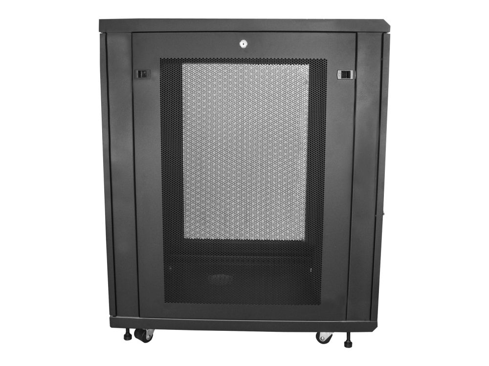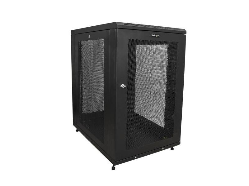 Detta serverrack tillhandahåller 18U lagringsutrymme i ett elegant, säkert skåp för lagring av standard 19 tums rackmonterade enheter som exempelvis Dell, HP och IBM-servrar, tillsammans med telekommunikations- och A/V-utrustning. Racket är kompatibel med EIA-310-kompatibel utrustning och stöder en sammanlagd lastkapacitet på 450 kg.