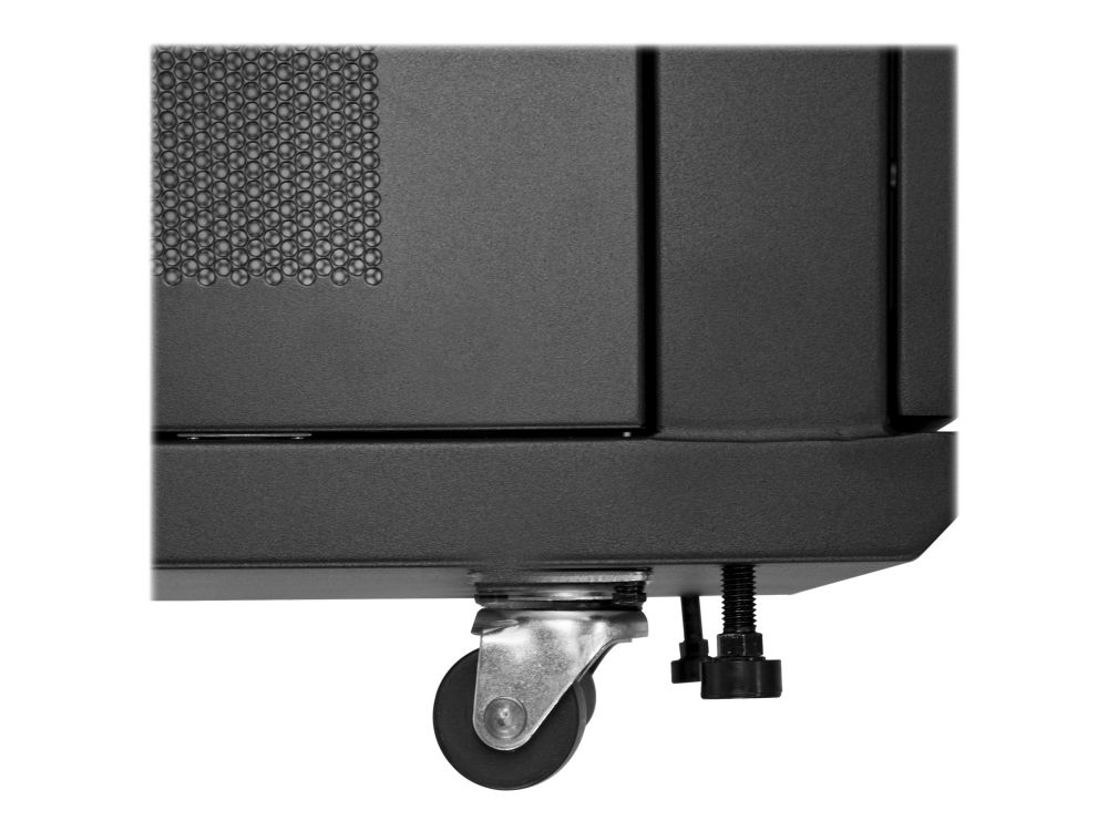 Maximal manövrerbarhet med medföljande hjul Skåpet har hjul för problemfri tillgång till bakmonterad utrustning samtidigt som det gör att du enkelt kan flytta den i kontoret, studion eller serverrummet. Bredden och höjden på hyllan får dessutom plats genom standard dörröppningar så att du kan rulla serverhyllan till olika rum.