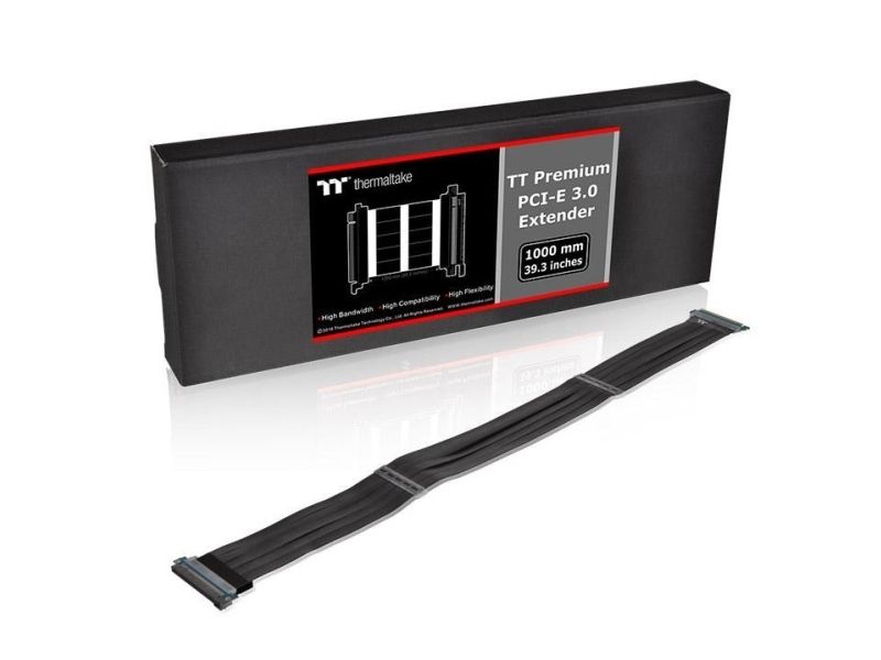 Thermaltake TT Premium PCI-E 3.0 Extender – 300mm Thermaltake has launches the latest Thermaltake TT Premium PCI-E 3.0 Extender series with ultra-excellent quality to meet the most demanding system. Features like, extreme high-speed cable with highly-routable and foldable design, EMI shielding with conducting polymer, special cable protector are crafted for exceeding your expectation. Available in 300mm, 600mm and 1000mm length, the TT Premium PCI-E 3.0 Extender series supports a wide range of GPU solutions and matches the cable included in any chassis.