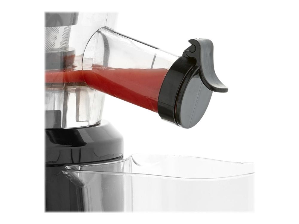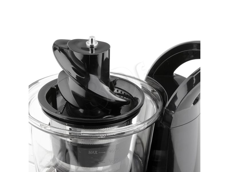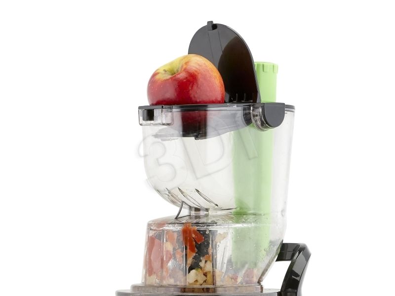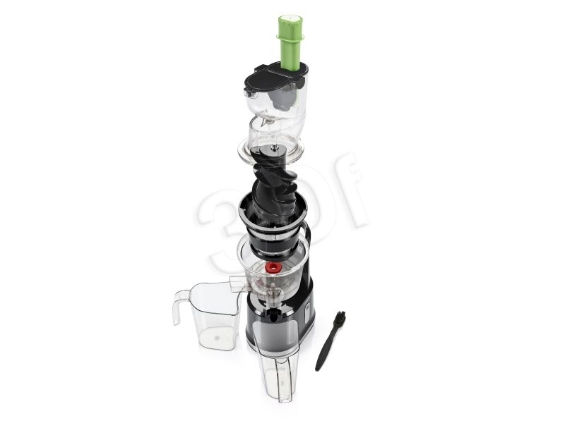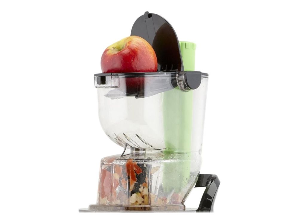 - Unique extra-large feeding tube so you can add whole apples and tomatoes - The powerful motor generates slow grinding rotations that extract a lot more juice than a traditional juicer - Vertical conical spindle and sieve to maximise the nutrients, vitamins and taste - Perfect for a healthy lifestyle with fresh fruit and vegetable juices or prepare healthy soups - Easy to clean thanks to the dishwasher proof parts