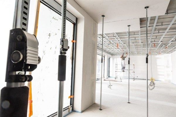 It enables the positioning and holding of plaster carton, wooden planks, panels, battens, metal