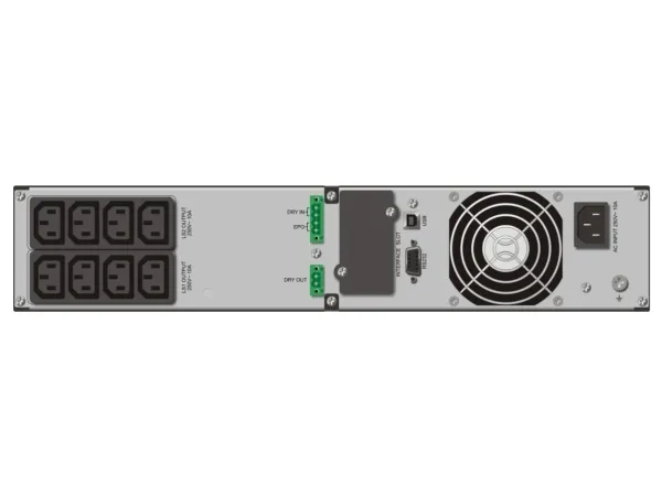 With true double-conversion online UPS design, PowerWalker VFI 2000RT provides powerful and overall protection to your sensitive devices. It can accep t wide input voltage for harsh environment. It offers full protection for critical devices such as sensitive servers, network/telephone communication systems as well as for industrial applications.\n\nWith its slim design it only requires 2U valuable space of your rack system. The UPS can be install ed in 19” rack systems or used as tower.