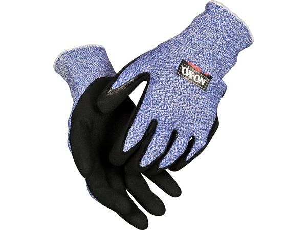 OX-ON Skærehæmmende fingerdyppet strikhandske i lycra med nitrilgummi i håndfladen og på fingre. S9. - (6 stk.)