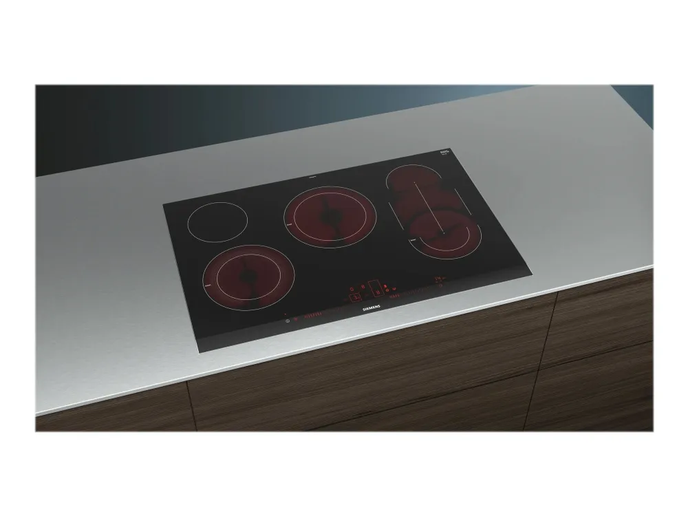 Siemens iQ500 ET875LMP1D keramisk komfyrtopp - 80 cm - svart - keramisk - med sidepynt av rustfritt stål, - med fasettert frontkant