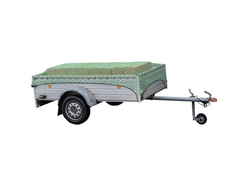 Til sikring af lasten i anhængeren. Med 8 mm kantbeskyttelse og 6 mm rundomsluttende gummispændebånd. Materialetykkelse net 3 mm.