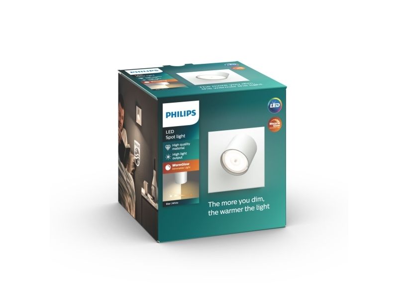 Philips WarmGlow LED Enkelt Star-spotlys, Overflateegnet, Ikke-utskiftbare pærer, 1 ampuller, LED, 4,5 W, 2700 K