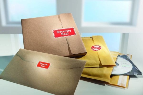 | • Påtrykt "Security Seal", så de kan forstås internationalt • Velegnet til forsegling af breve, pakker og dokumenter • Manipulation ses straks ved hjælp af VOID-anbrudssikring • Sikker klæbeevne på alle gængse materialer • Fås i praktisk dispenser, hvor etiketterne trækkes frem i takt med brug |