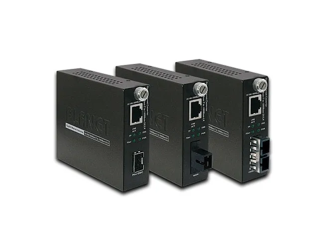 PLANET GST-80x Smart Gigabit Media Converter series extends communication distance with highly Gigabit performance via fiber optical cable. The GST-80x series provides media conversion between 10/100/1000Base-T and 1000Base-SX/LX interfaces such as multi-mode LC/SC connectors (220m / 550m), single-mode LC/SC connectors (10/20/30/40/50/70/120km) and single fiber connectors (WDM,15/60km) for various fiber optic applications.