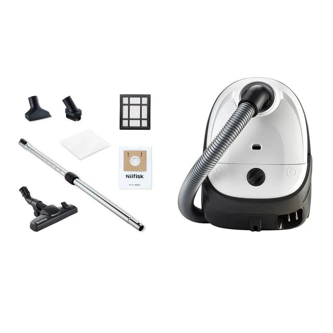 Nilfisk One er den kompakte posestøvsugeren som gir god ytelse i små hjem. Den lette og manøvrerbare designen gjør det enkelt å komme til under møbler og i hjørner, mens et smart oppbevaringsbelte holder slangen nær maskinen, slik at den er enkel å pakke bort i skap og skuffer. Med en 750 W motor, sterk sugeevne og variabel hastighet får du effektiv rengjøring på både harde gulv og tepper, og EPA10-filteret bidrar til å holde på fine partikler for et renere inneklima. Automatisk kabelopprulling og lavt støynivå gjør daglig rengjøring mer komfortabel, og den store støvposen på 3,1 liter betyr færre støvskift. Perfekt som primærstøvsuger i leiligheter eller som en ekstra maskin i hjem der plassen er begrenset.